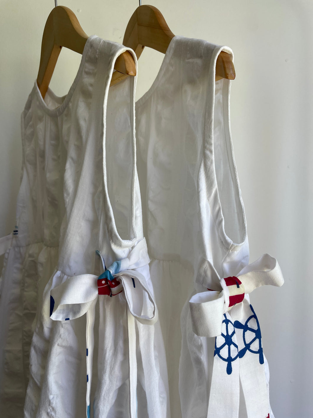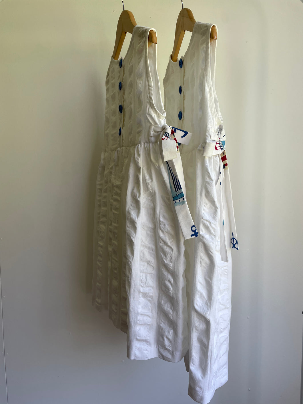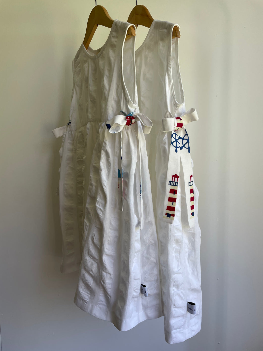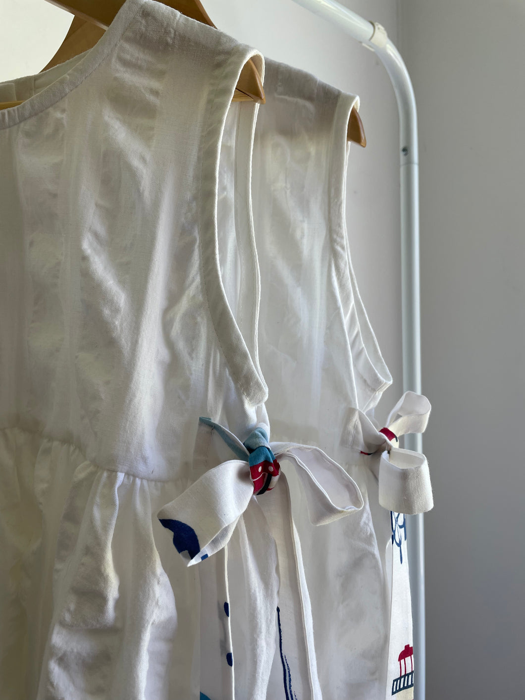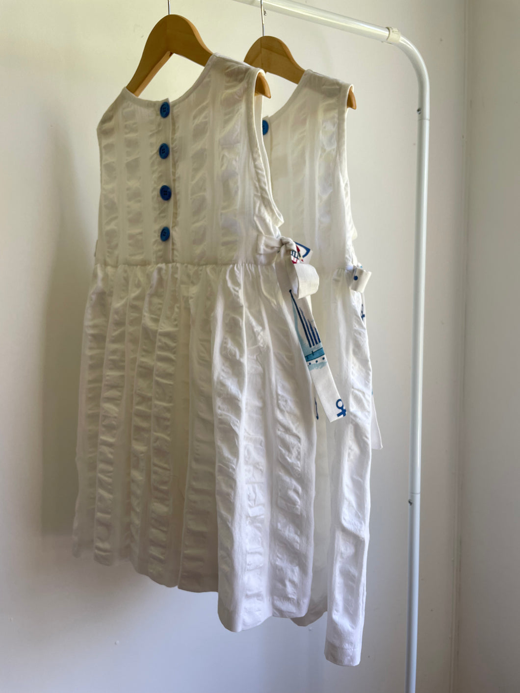 Perfect for little adventurers heading from beach to boardwalk, this timeless white dress is a nod to slow fashion — thoughtfully made from upcycled fabrics so every piece is unique and sustainable.